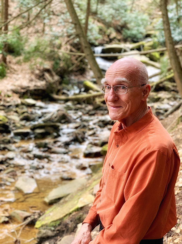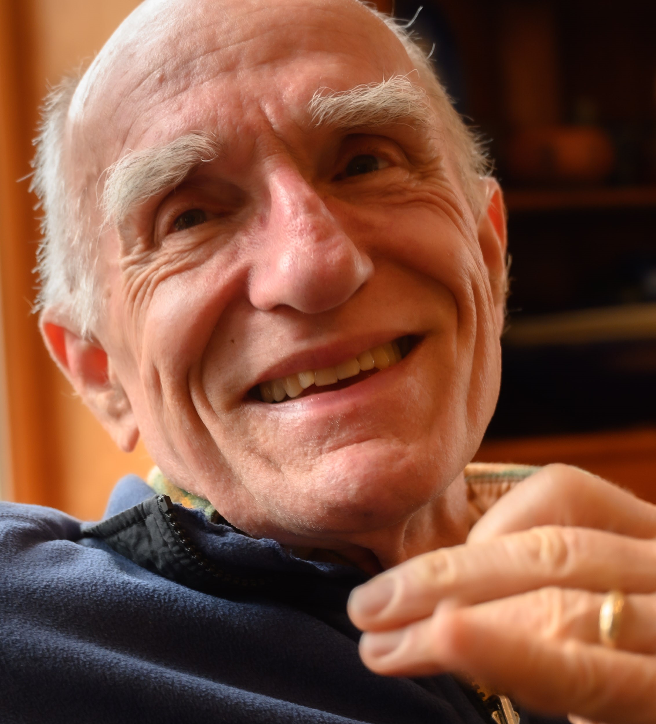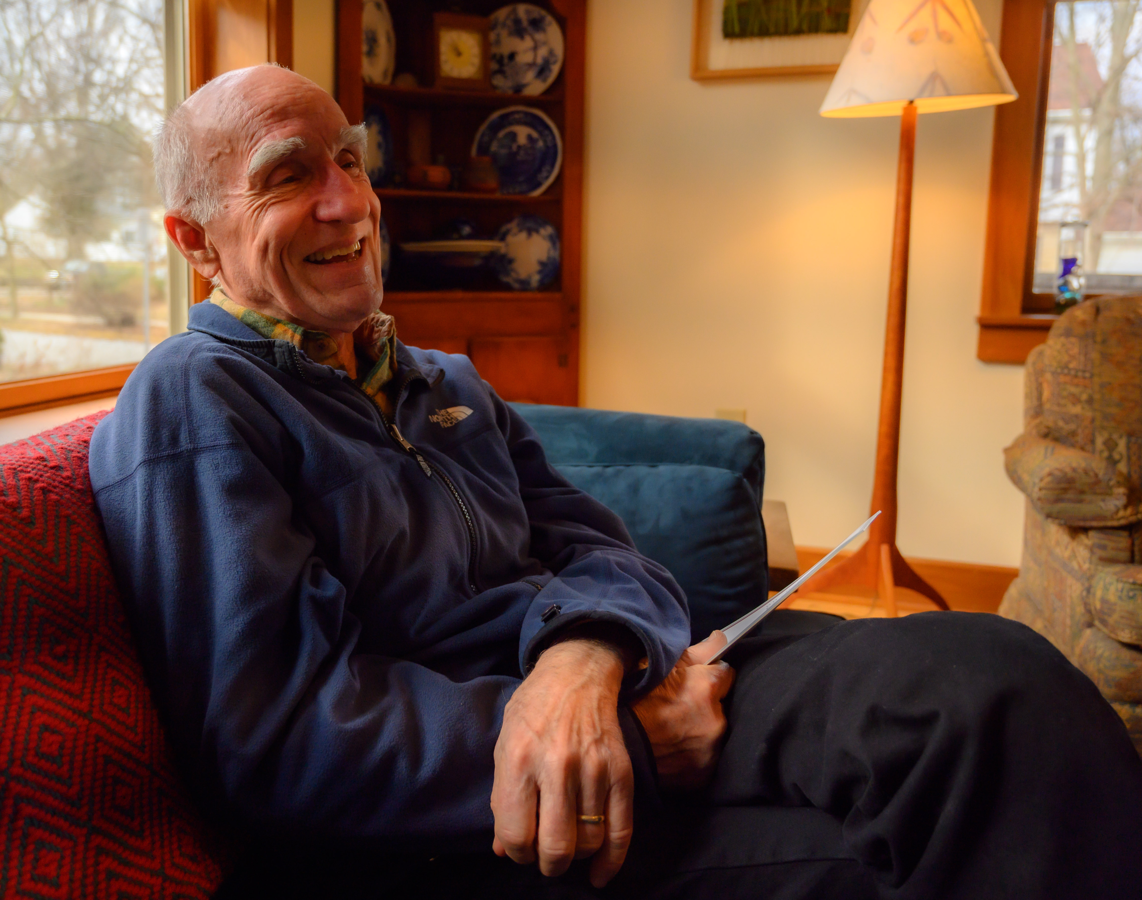Scott in his and Ruth's new solar-powered house in Bloomington. Credit: Peter Forbes https://peterforbes.org/
